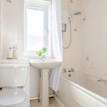 * Bathroom – fitted with a modern three-piece suite comprising bath with shower over, wash basin, and WC.
